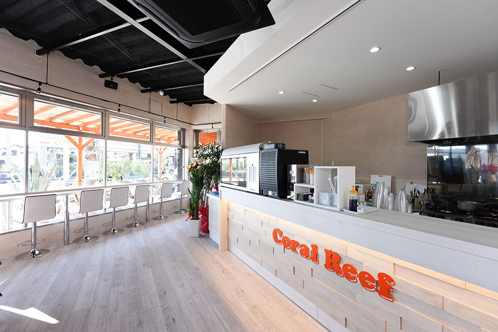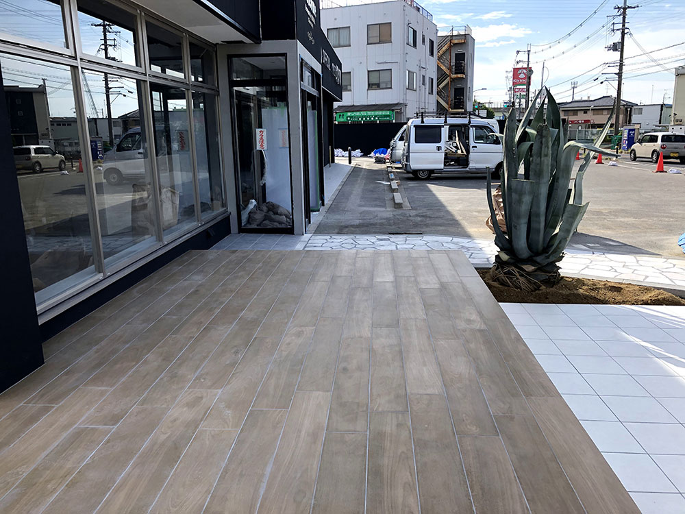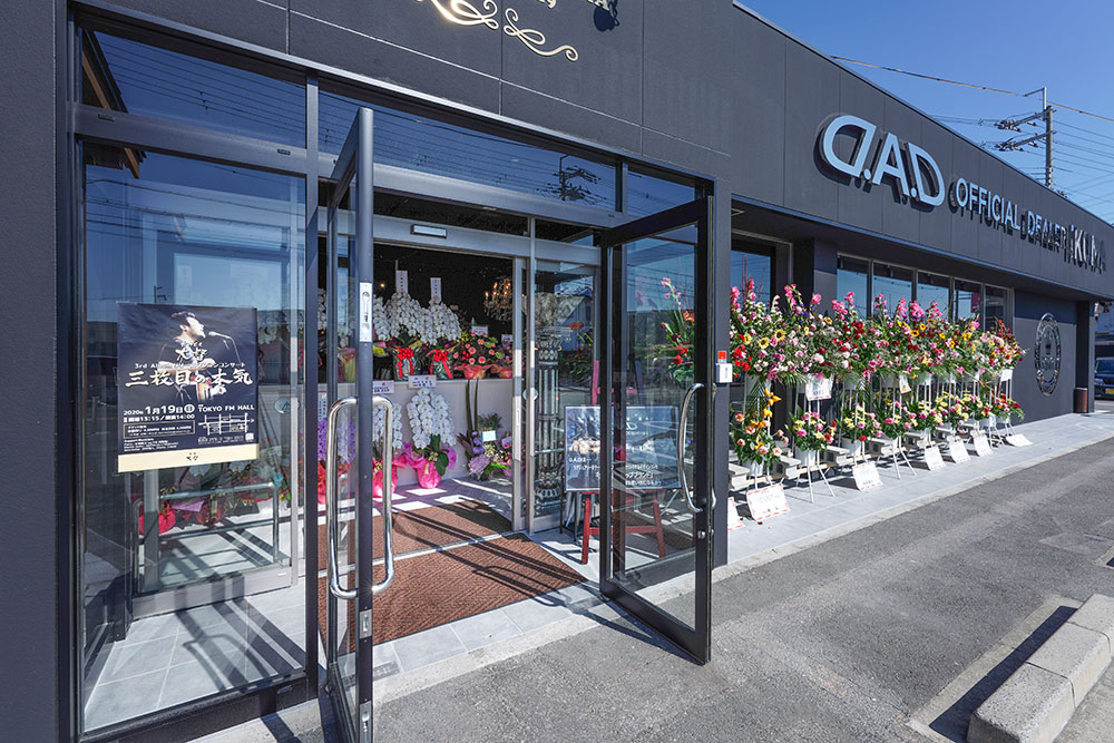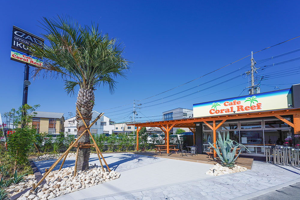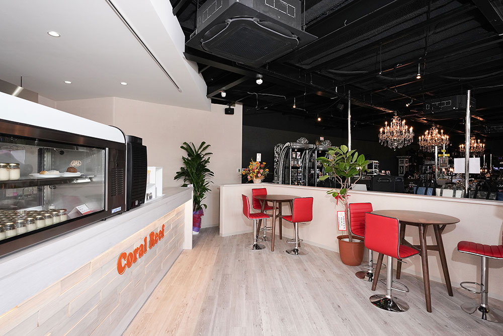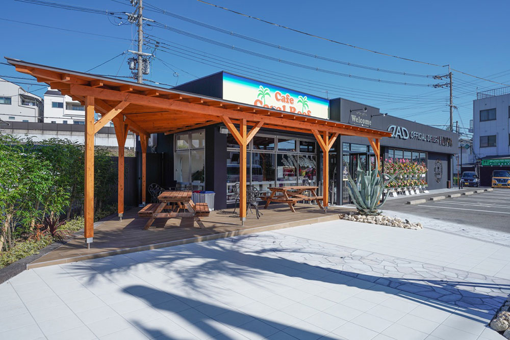 元コンビニだった店をショップ&カフェに改装した案件です。ショップはドレスアップカーの販売、車のパーツや小物、アクセサリーなどを取扱うお店でラグジュアリーな雰囲気に。