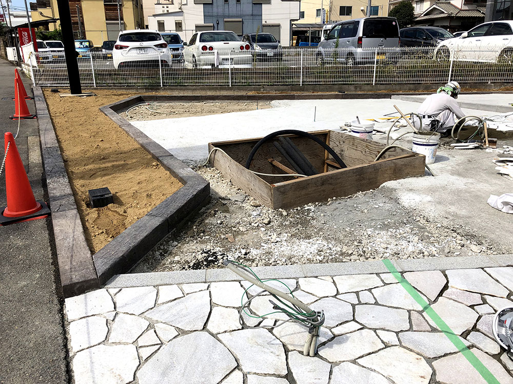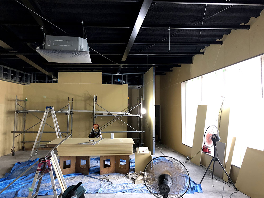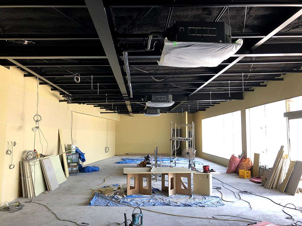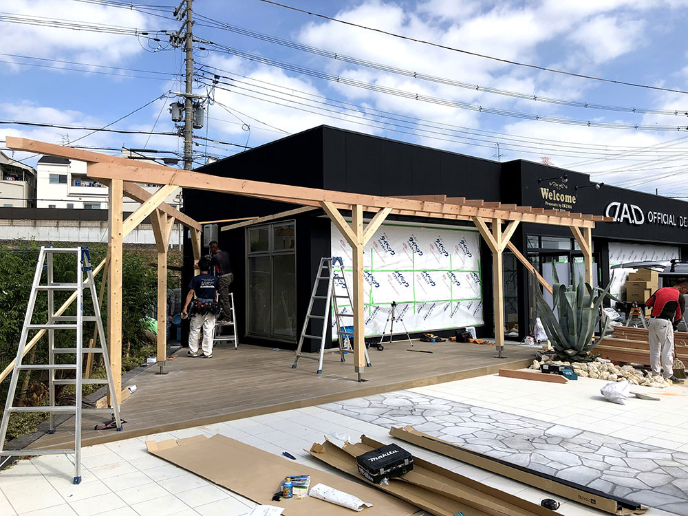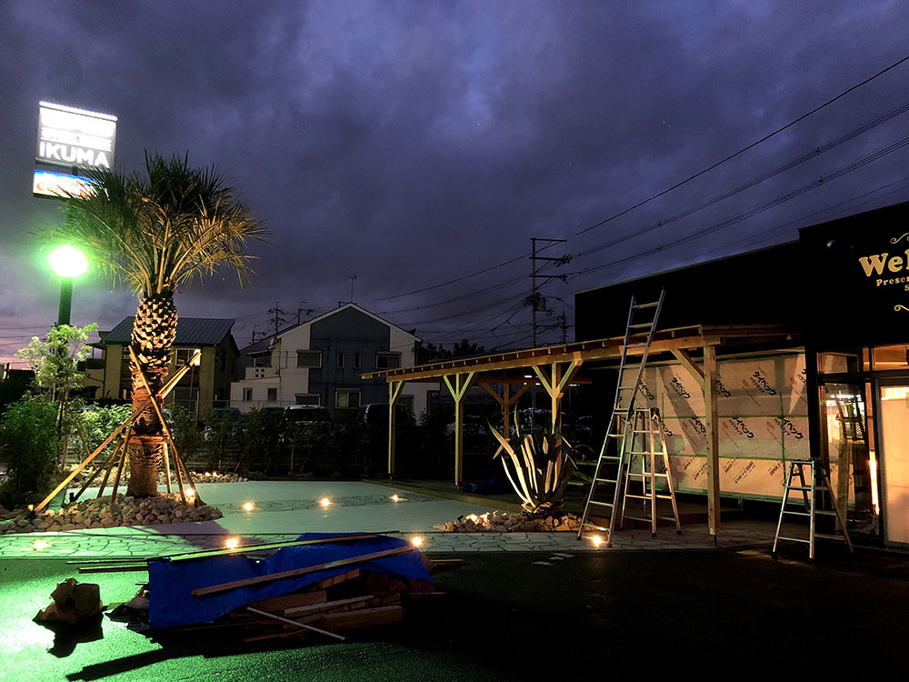 元コンビニだった店をショップ&カフェに改装した案件です。ショップはドレスアップカーの販売、車のパーツや小物、アクセサリーなどを取扱うお店でラグジュアリーな雰囲気に。