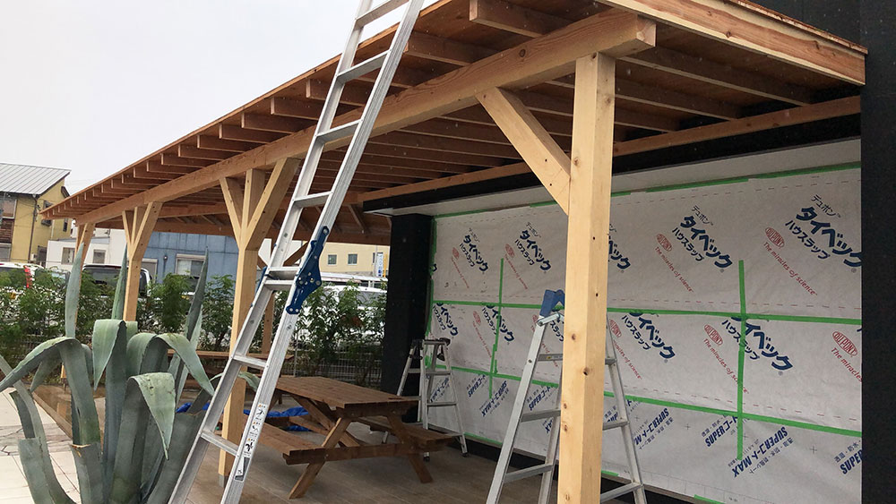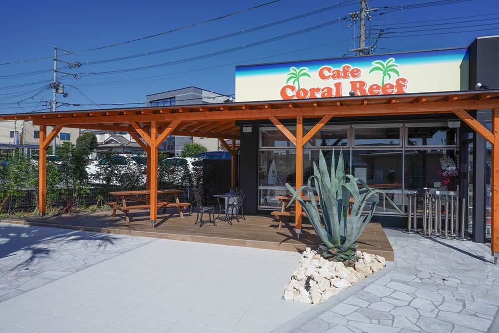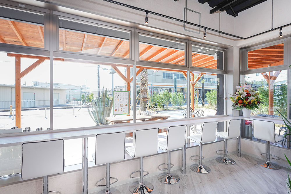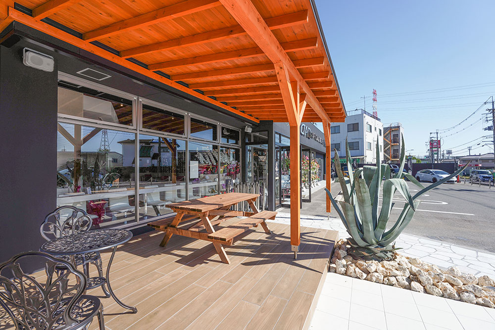 カフェはセルフ式でオープンテラス席、軽食もありかわいいお店に仕上がりました。