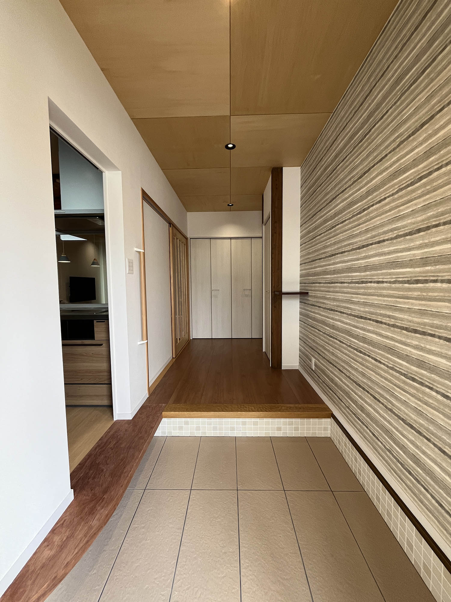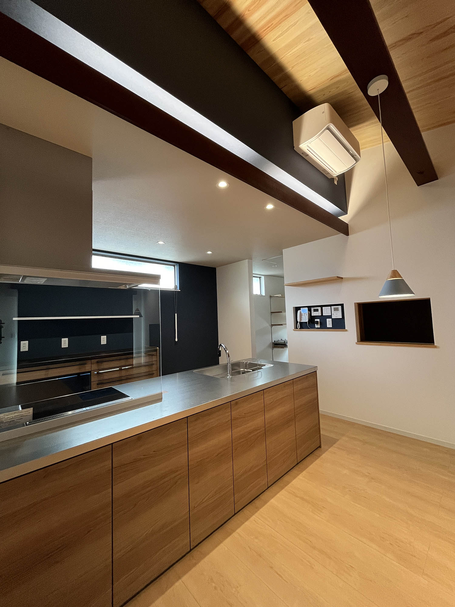 3人家族+ワンちゃんが暮らすお家リビングを中心に、家族がつながる距離がちょうどいい間取りを提案しました。ワンちゃんに優しいフローリングを採用しています。